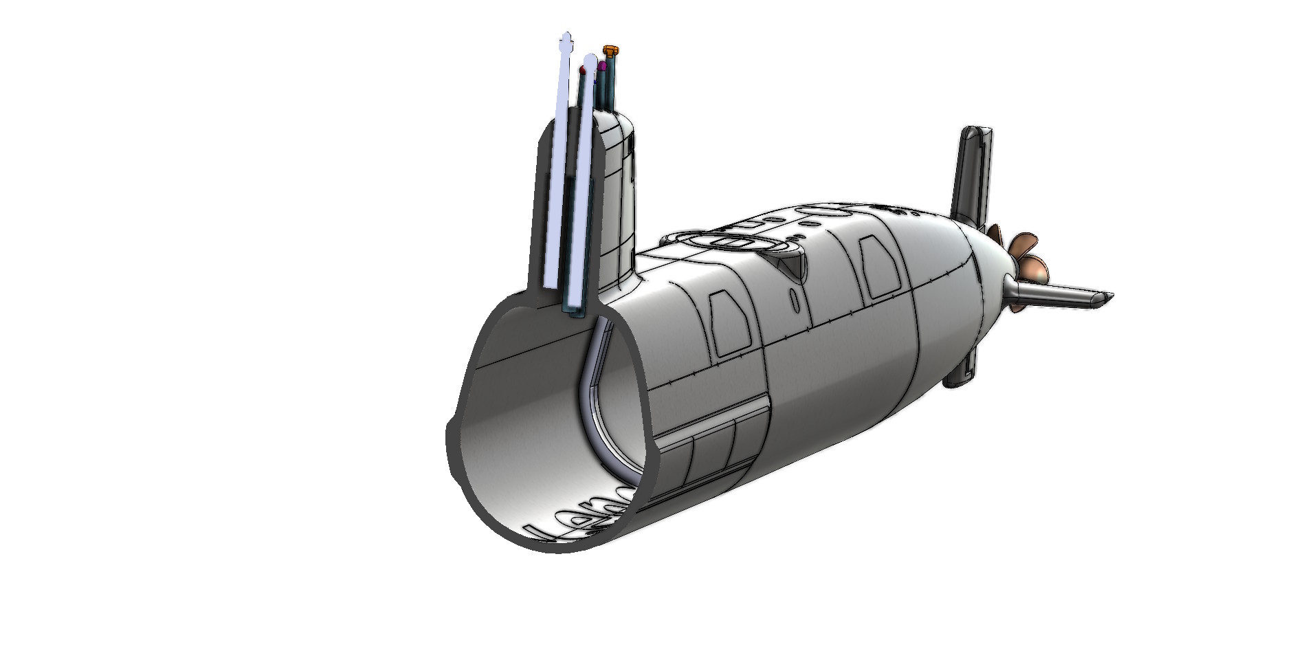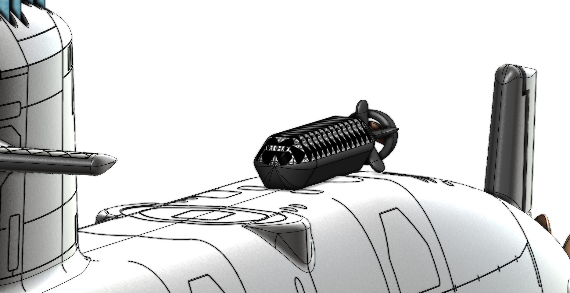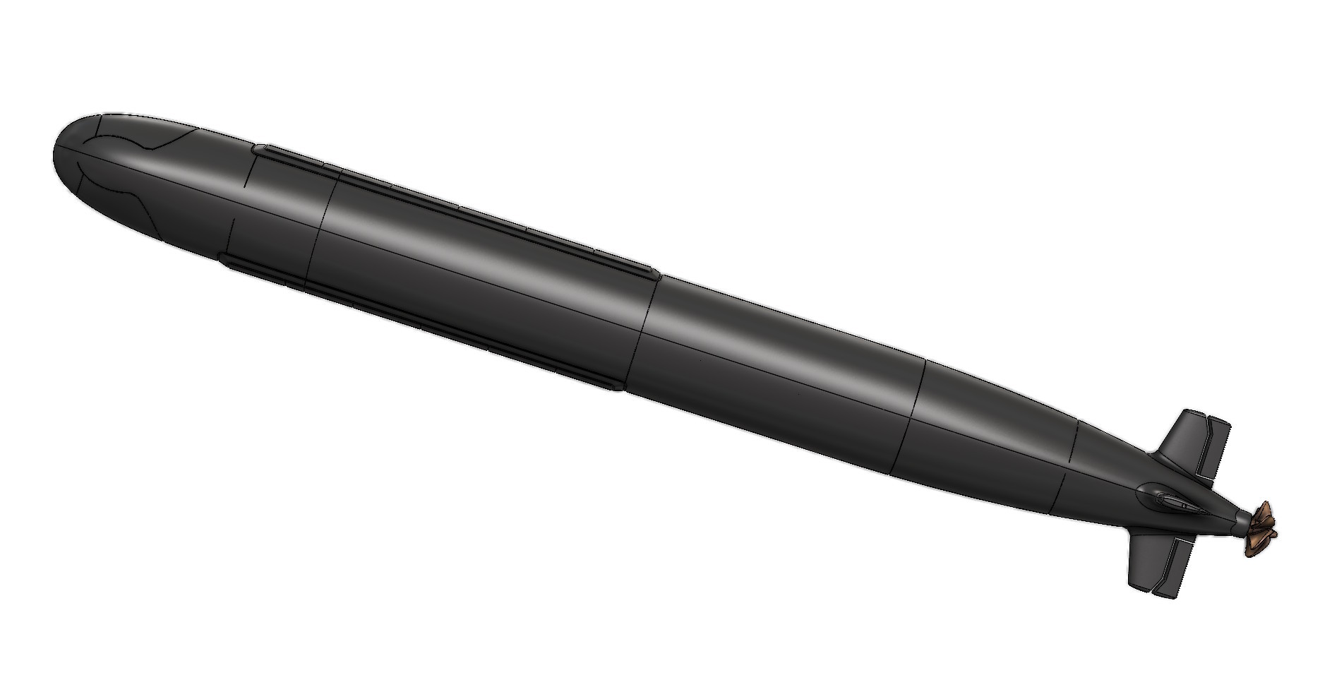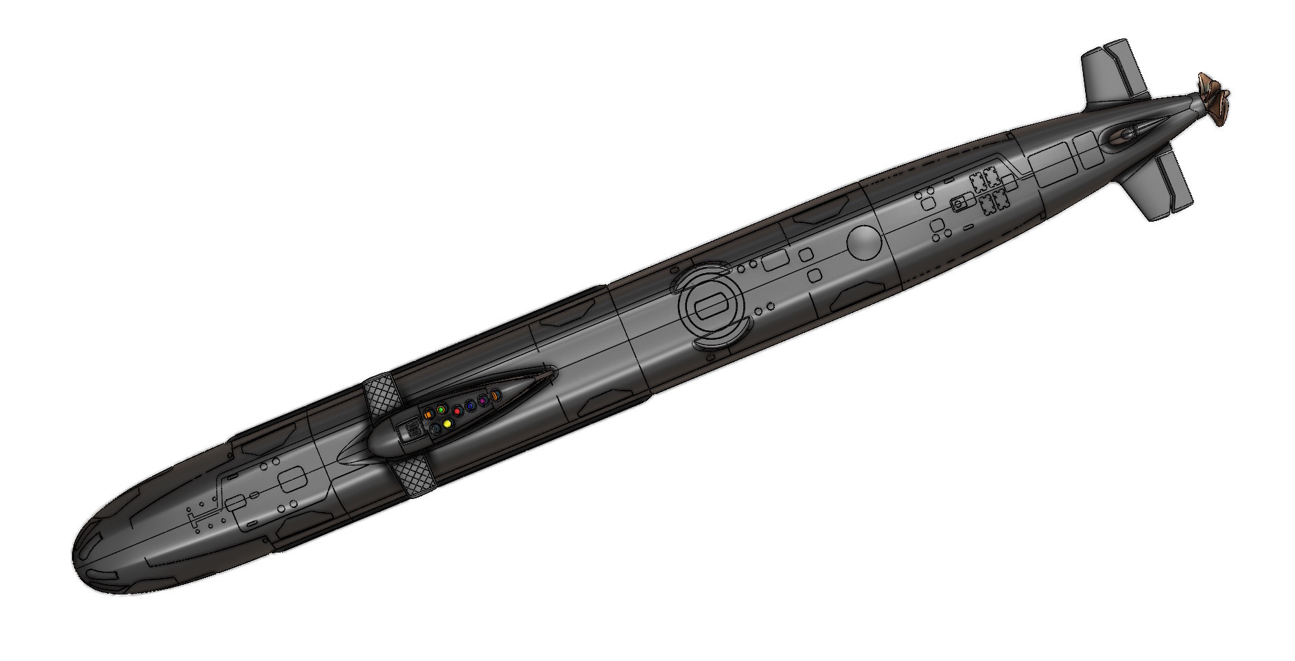 The exterior of the high-detail model features engraved surface textures and panel lines, each 0.25 mm deep and thick, built directly into the hull geometry. These lines print seamlessly with the hull sections, requiring no manual work, yet they significantly enhance the realism and visual depth of the finished submarine. Every curve, seam, and opening has been recreated to maintain scale accuracy while ensuring a smooth print on most machines.