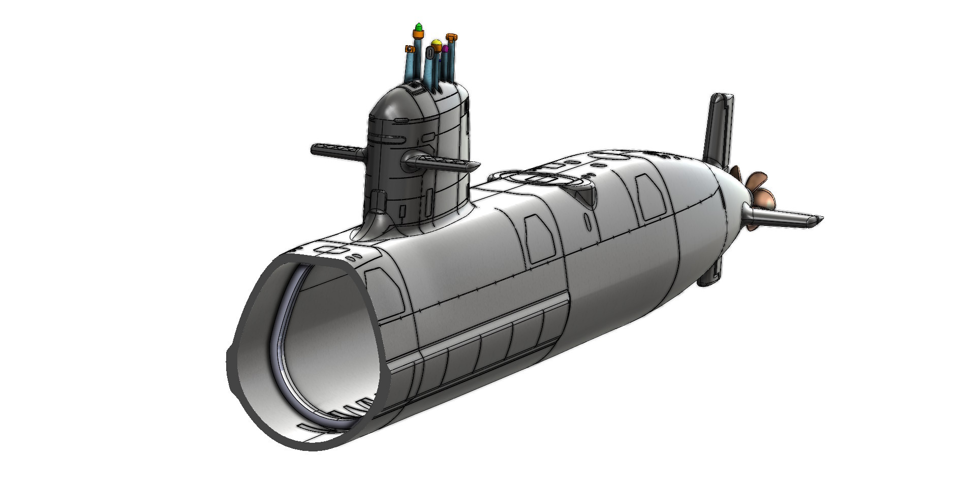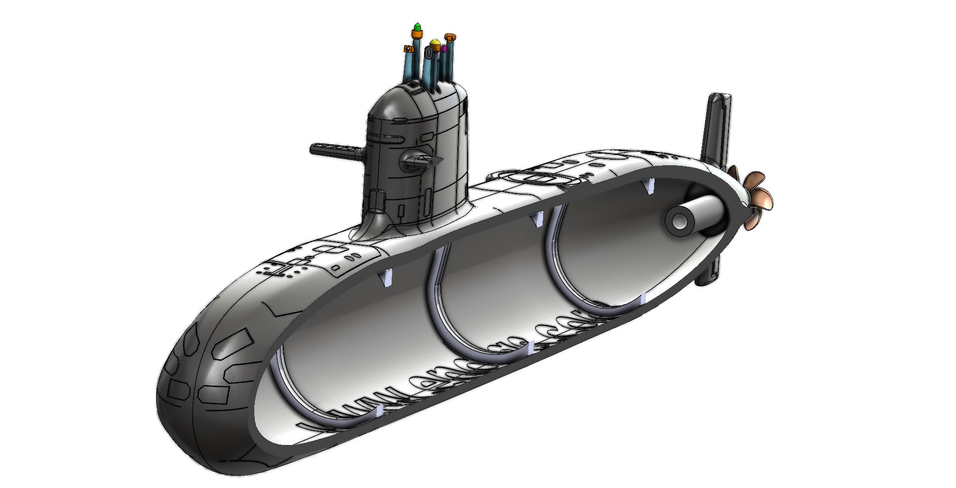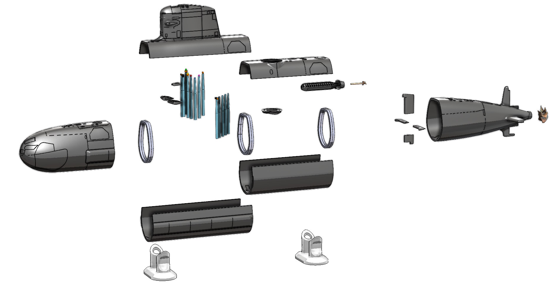 To bring this modern masterpiece into digital form, we created a 1:87 scale, 3D printable model of the Scorpène-class submarine, designed to capture both the beauty and engineering precision of the original vessel. Measuring 763 mm in length, this version consists of 35 separate high-poly STL files, optimized for easy printing with most FDM and resin printers. The hull interior is mostly empty, with a 5–7 mm wall thickness, reinforced by three internal bulkheads that ensure alignment and add rigidity during assembly. These features make the model both durable and straightforward to build, even for large-format prints.