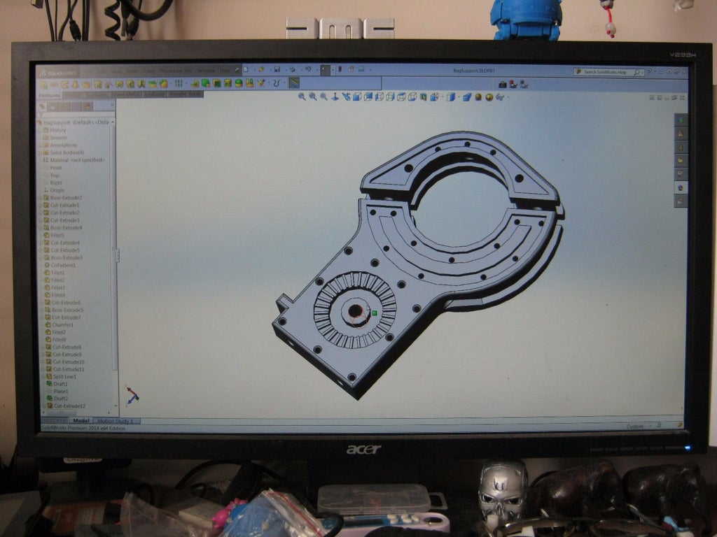 I ended up with a part like this. I’ve arranged necessary details with required dimensions, and overall enlarged other dimensions to make it a bit bulkier. I’ve enlarged the surfaces for them to be able to carry reinforcing fiberglass fabric.