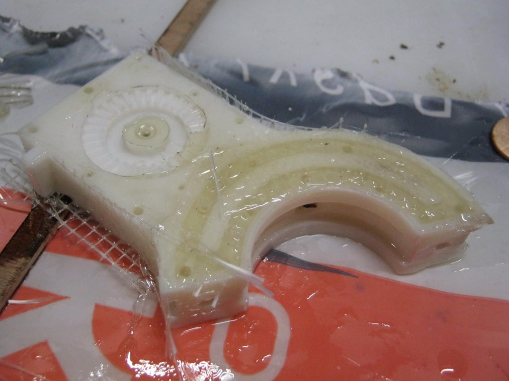 Repeated this for each side on all parts and left them to cure around a day after each application. Took a while for the parts to be glassed completely.