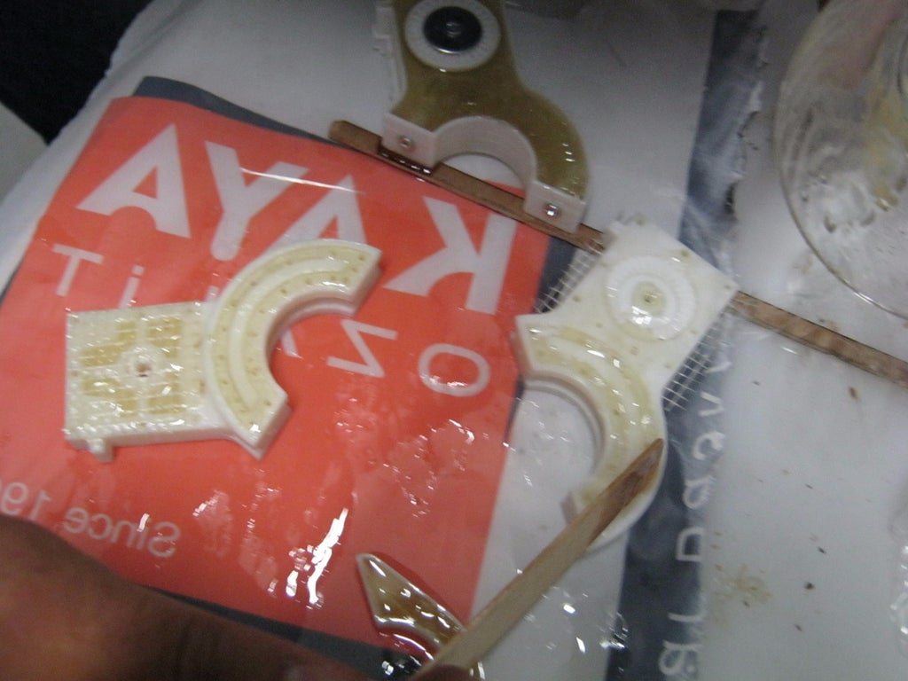 Then I laid the parts on a piece of nylon as epoxy fortunately doesn’t stick to nylon well. Then applied epoxy resin to the surface, put the fiberglass fabric cut to required shape and size over the wet surface and applied more epoxy on top. Until the fiberglass fabric becomes transparent.