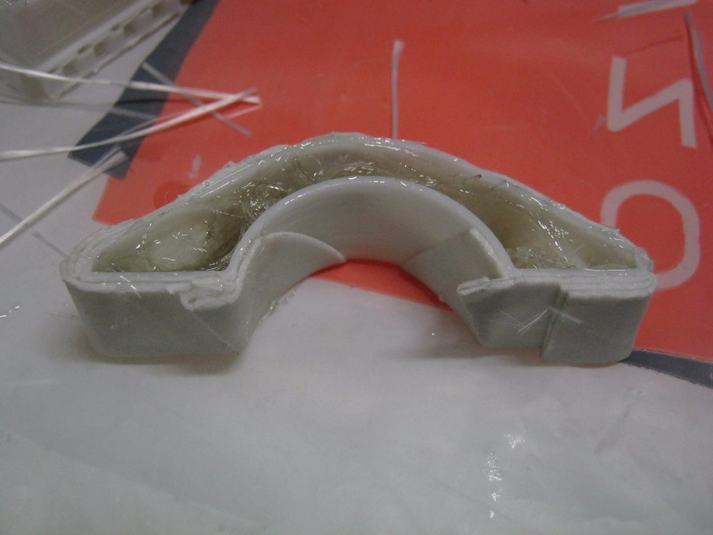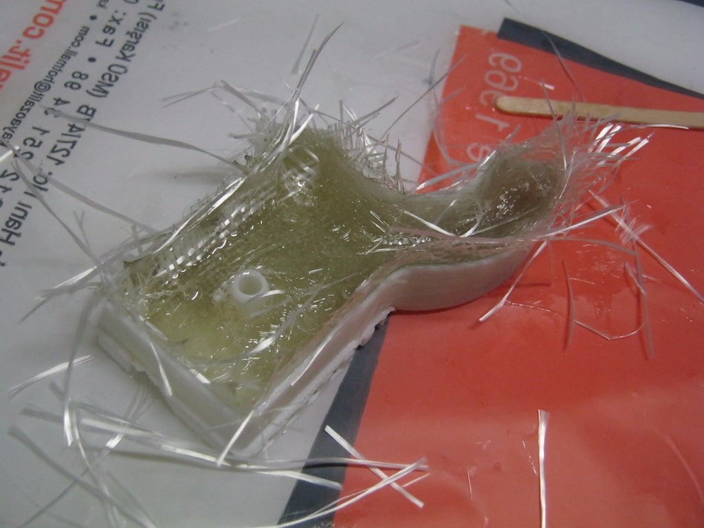 With the previous mehod, the part was filled with more epoxy and a little bit less fiberglass fabric. With this method, the part is filled with a lot of fiberglass and less epoxy in between the layers.