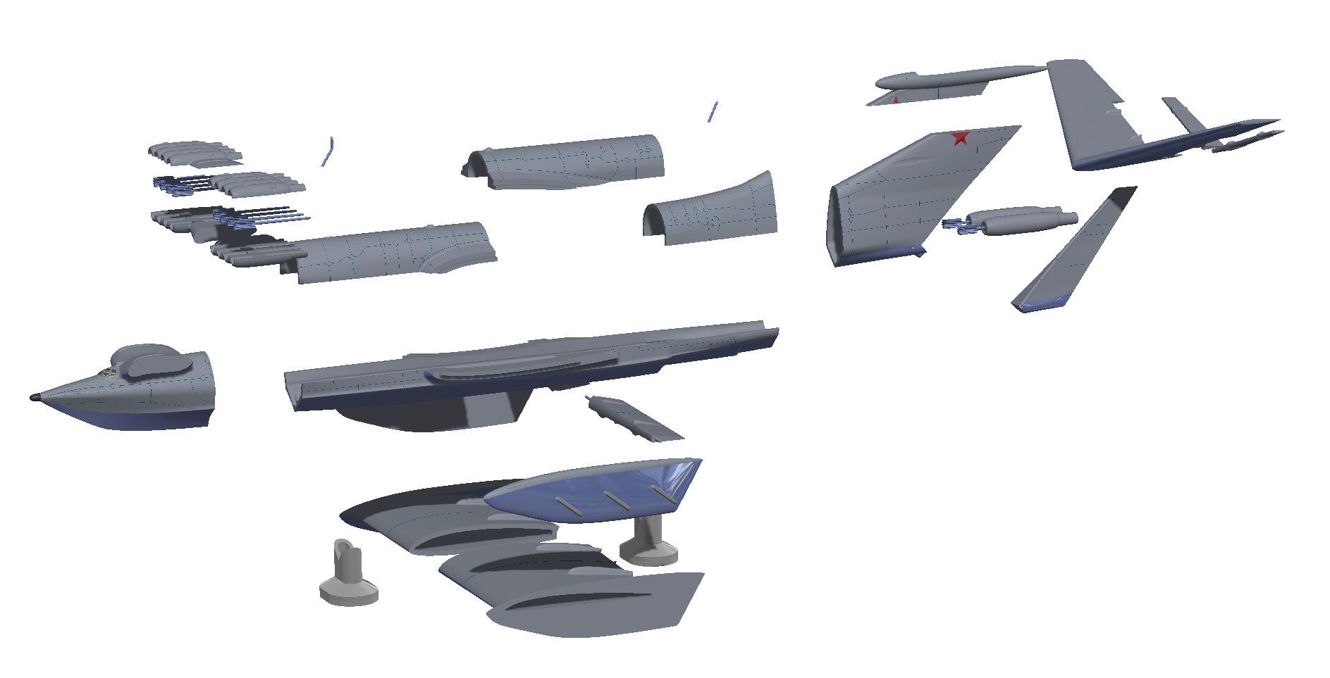 Now, the legend of the Caspian Monster can live again — this time on your workbench. I’ve created a 1-meter-long 3D printable model of the KM Ekranoplan, divided into over 30+ high-resolution, easy-to-print parts that capture the machine’s strange beauty and impossible scale. The interior is hollow, with hull and fuselage thicknesses averaging 4–6 mm, making it lightweight and ideal for conversion into a working RC model. Whether you choose to display it as a Cold War relic or bring it back to life, skimming over a lake, this build offers a hands-on tribute to one of humanity’s boldest engineering experiments — the flying ship that refused to fit in.